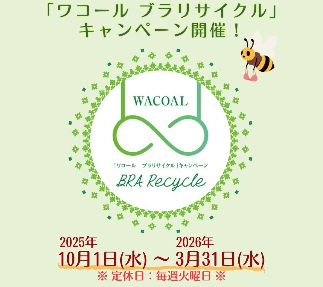 開催期間:2025年10月1日(水)~12月31日(水)詳しくは➡ 「ワコール ブラリサイクル」キャンペーン